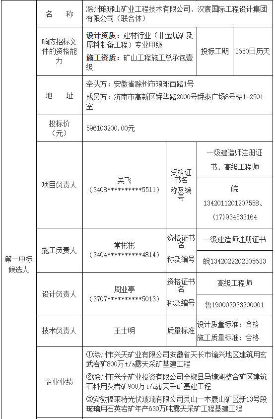 滁州瑯琊山礦業(yè)工程技術(shù)有限公司、漢宸國際工程設(shè)計集團有限公司(聯(lián)合體)
