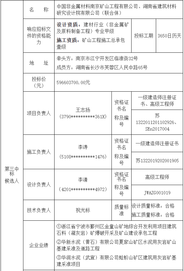 礦山工程有限公司、湖南省建筑材料研究設(shè)計院有限公司(聯(lián)合體)