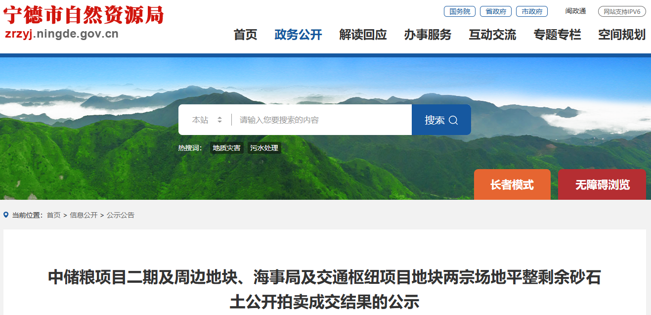 近日,寧德市自然資源局發(fā)布中儲(chǔ)糧項(xiàng)目二期及周邊地塊、海事局及交通樞紐項(xiàng)目地塊兩宗場(chǎng)地平整剩余砂石土公開拍賣成交結(jié)果的公示。