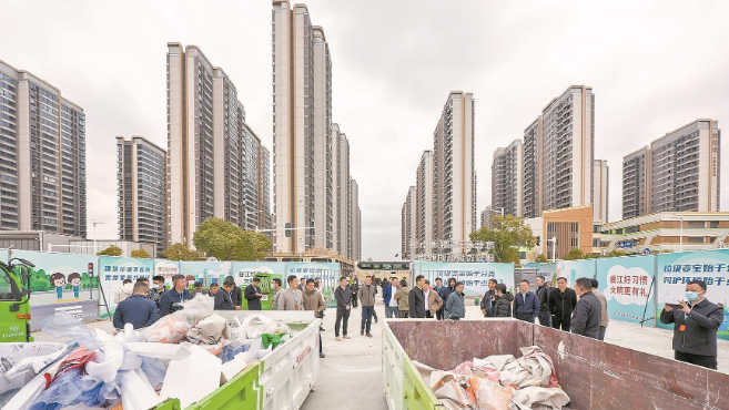 在陳埭鎮(zhèn),當(dāng)?shù)赝ㄟ^建設(shè)建筑垃圾規(guī)范化分揀中心、配備環(huán)保抑塵設(shè)施,有效應(yīng)對了因城市開發(fā)密集帶來的建筑垃圾治理壓力。在該鎮(zhèn)的御湖鏡小區(qū),與會(huì)人員看到小區(qū)設(shè)置了回收箱式建筑垃圾臨時(shí)交付點(diǎn),一旁墻面上張貼著《晉江市建筑垃圾處置設(shè)施公示牌》,設(shè)施名稱、經(jīng)營單位、責(zé)任單位、聯(lián)系電話、開放時(shí)間、消納種類等信息一目了然。據(jù)悉,在晉江市,所有小區(qū)、社區(qū)基本已設(shè)置中轉(zhuǎn)站、臨時(shí)堆放點(diǎn),并與專業(yè)企業(yè)簽訂處置協(xié)議,建立了完善的建筑垃圾管理臺(tái)賬,做到了建筑垃圾產(chǎn)生源頭、臨時(shí)堆放、運(yùn)輸、處置等環(huán)節(jié)均有管理臺(tái)賬可查,實(shí)現(xiàn)了建筑垃圾治理的全過程監(jiān)管。