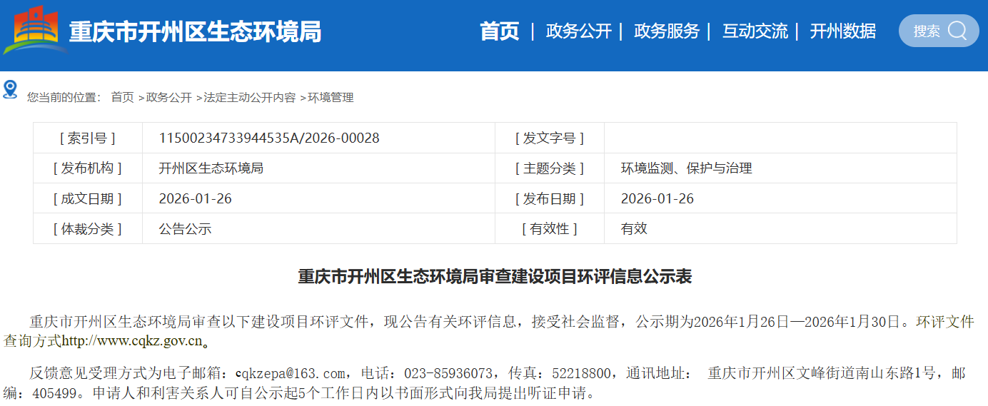 近日,重慶市開州區(qū)生態(tài)環(huán)境局發(fā)布重慶市開州區(qū)南門鎮(zhèn)清泉村建筑石料用灰?guī)r礦開采項(xiàng)目環(huán)評信息公示。