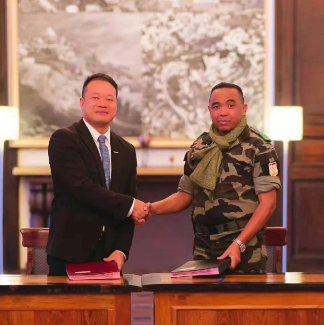 孫建強(qiáng)總經(jīng)理與米夏埃爾·蘭德里亞尼里納總統(tǒng)簽署MOU