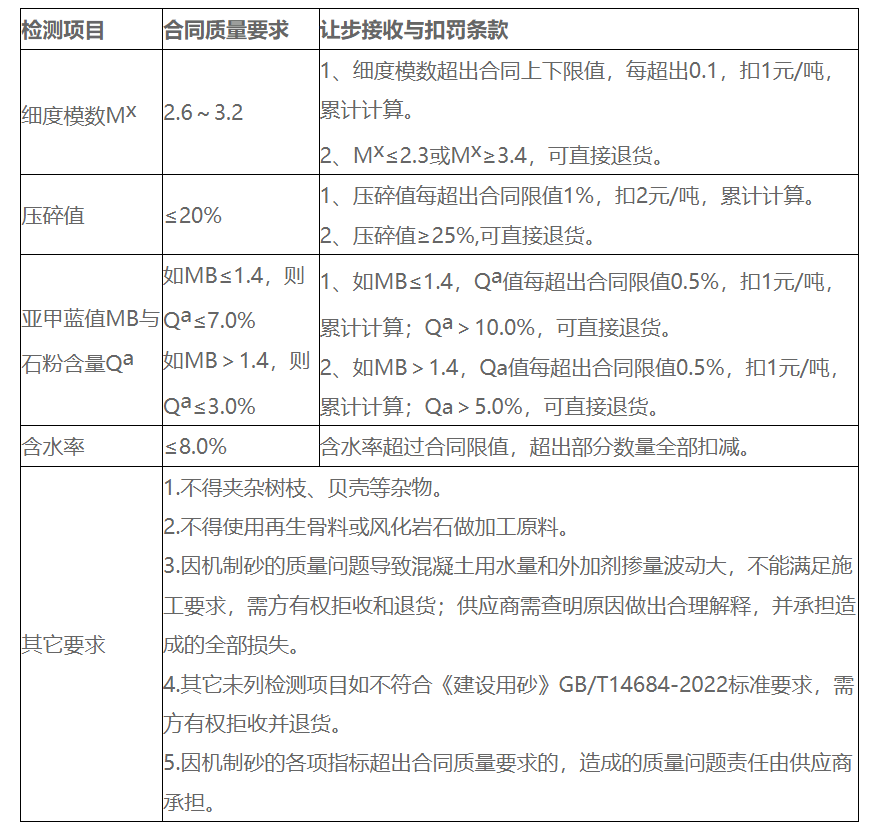 2.機制砂技術(shù)參數(shù)要求
