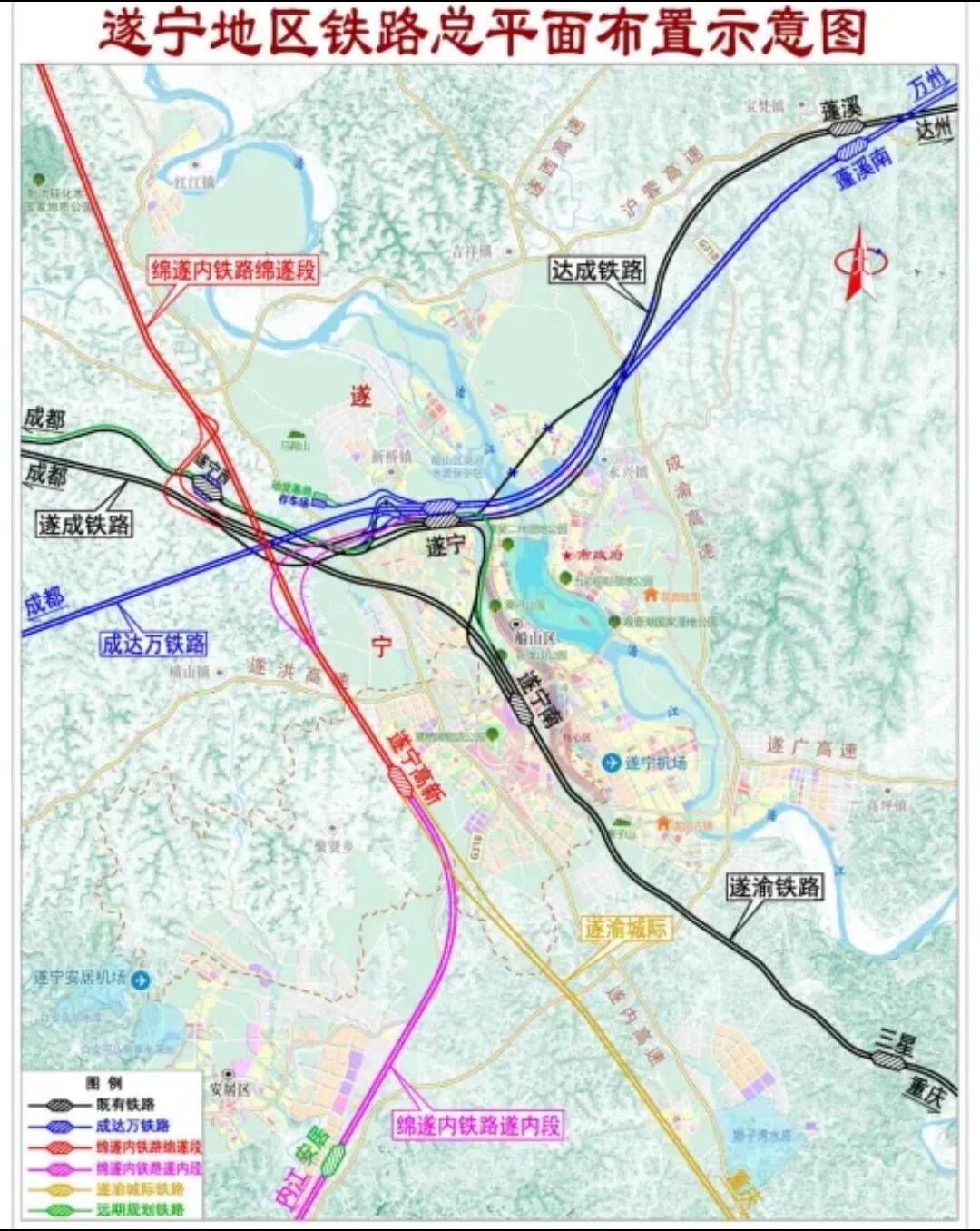 遂內鐵路工程可研批復總投資208.83億元,建設工期4年,包含新建正線長度107.838km。