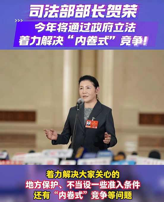 司法部部長賀榮3月12日在十四屆全國人大四次會議第三場“部長通道”上表示,今年政府立法工作將重點突出幾個方面,其中之一是突出優(yōu)化營商環(huán)境,制定全國統(tǒng)一大市場建設條例,著力解決大家關(guān)心的地方保護、不當設一些準入條件,還有“內(nèi)卷式”競爭等問題。