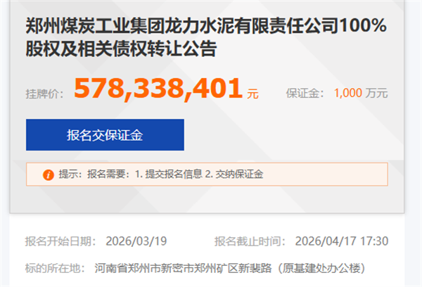 日前,鄭州煤炭工業(yè)集團龍力水泥有限責任公司100%股權(quán)及相關(guān)債權(quán)在產(chǎn)權(quán)交易平臺公開轉(zhuǎn)讓,項目轉(zhuǎn)讓底價5.78億元,其中100%股權(quán)轉(zhuǎn)讓底價僅為1元。
