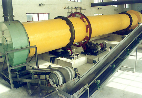 石灰通過進料裝置進入冷卻機。冷卻機回轉(zhuǎn),其內(nèi)揚料板帶動物料與空氣進行充分熱交換,同時隨著按照設計斜度和轉(zhuǎn)速不停轉(zhuǎn)動的筒體,物料也在筒體內(nèi)周期性地翻滾前進,從而把物料由進料端輸送到出料端,并保證在物料在通過單筒冷卻機的時間內(nèi)將其冷卻到環(huán)境溫度+80℃以下,從而完成整個冷卻過程。