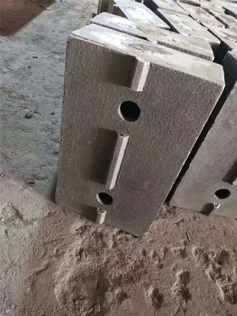 反擊板有調(diào)節(jié)排料口的特點(diǎn),改變反擊板下端與轉(zhuǎn)子間的間隙,可以控制產(chǎn)品粒度。因此,反擊板的上端通過懸掛軸鉸鏈在上機(jī)體上。下端用拉桿螺栓或彈簧吊懸在機(jī)體上,便于調(diào)節(jié)反擊板的高低,達(dá)到改變排料間隙之目的。我們鑄造吸收國內(nèi)外先進(jìn)技術(shù)后設(shè)計生產(chǎn)出了新型反擊板,采用高錳鋼、超高錳鋼、高鉻鑄鐵,利用控制凝固方式、優(yōu)化熱處理工藝,使襯反擊板硬度高,韌性好,抗沖擊耐磨,適用于大中型反擊式破碎機(jī)的工作需要。