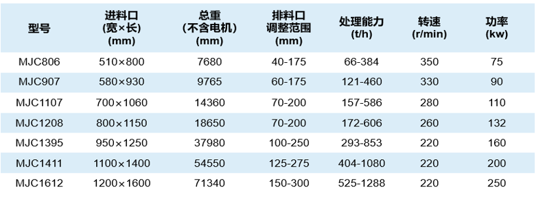 - MJC系列顎式破碎機(jī)具有較大的偏心距,加上陡峭的肘板角度,可以放大破碎機(jī)卸料時(shí)的有效行程。大行程與正確的速度、咬合角度,飛輪慣性和高功率相結(jié)合,可實(shí)現(xiàn)真正的高破碎機(jī)性能。