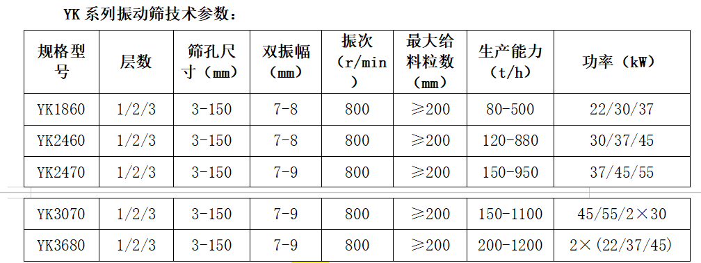 YK系列振動篩,采用內(nèi)偏心軸作為激振動力,利用電機(jī)帶動偏心軸旋轉(zhuǎn)后聯(lián)動振動篩做上、前、下、后的圓運(yùn)動軌跡,使被篩分物料均勻,快速溜過篩網(wǎng)而完成篩分工作。