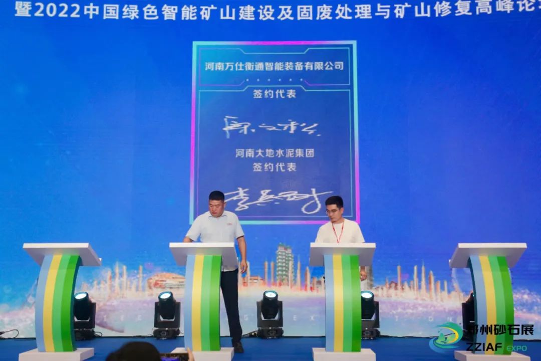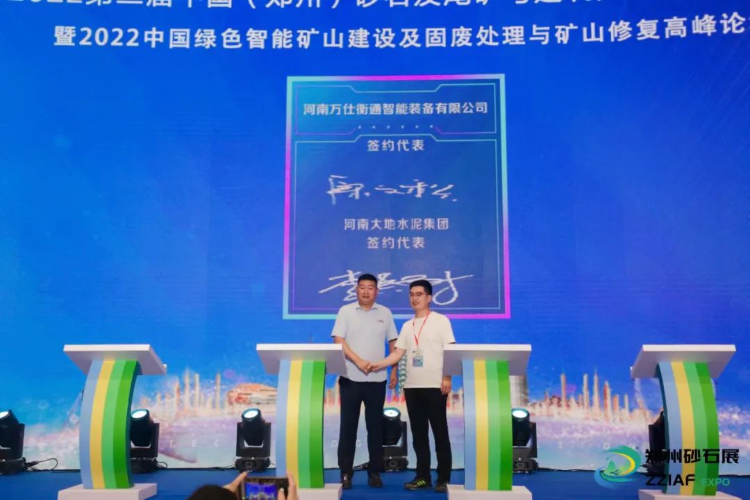 2022年8月22-24日,為期3天的2022第二屆中國(鄭州)砂石及尾礦與建筑固廢處理技術(shù)展覽會在鄭州國際會展中心舉行。河南萬仕衡通智能裝備有限公司(以下稱萬仕衡通)作為一家礦山設(shè)備設(shè)計、制造、安裝、EPCO一站式綜合服務(wù)商,連續(xù)兩年參展,再次攜明星產(chǎn)品精彩亮相本屆展會,并于開幕式現(xiàn)場與河南大地水泥集團簽署了設(shè)備訂購合同,達成戰(zhàn)略合作協(xié)議。