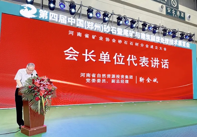 會上,河南省礦業(yè)協(xié)會砂石石材分會會長單位代表河南省自然資源投資集團黨委委員、副總經(jīng)理靳全斌上臺講話。