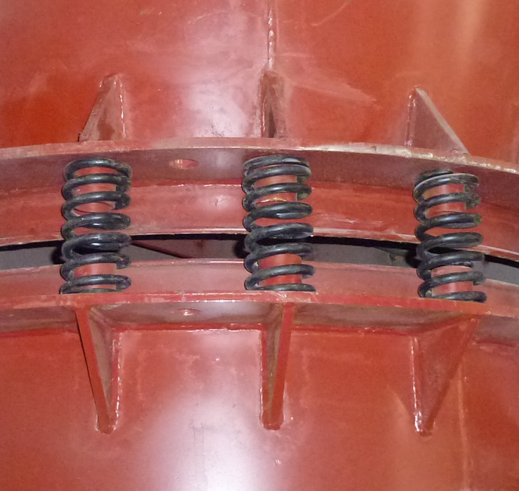 磨輥總成通過拉桿和水平放置的彈簧聯(lián)接,產生的徑向力避免了大塊物料對設備的損耗。主機和選粉機的彈性連接,減輕了震動和噪音,提高了設備的使用壽命。