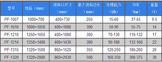 進(jìn)料口大、破碎腔高、適應(yīng)物料硬度高、塊度大、產(chǎn)品石粉少