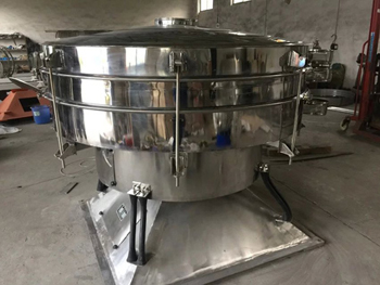 按積木式結構原理設計開發(fā),由一剛性曲柄軸驅動,并進行了動態(tài)平衡。在可調整傾角的剛性曲柄軸的驅動下,圓形的篩機體可實現(xiàn)三維空間運動,即在水平的圓周運動上疊加一個垂直方向的上下運動。振動的參數(shù)隨旋轉速度、曲柄偏心度、徑向傾角和切向傾角的大小而變化。這種設計構造,使得其工作參數(shù)的組合可以無窮的多,從而使得被篩分的物料可以以所期望的速度在篩網(wǎng)層上運動,或者在期望的時間內滯留在篩網(wǎng)層上。篩機振幅及物料的加速度隨曲柄偏心度的大小而變化,曲柄軸的切向傾角的大小決定著物料在篩網(wǎng)上作圓周運動的速度;曲柄軸的徑向傾角決定著物料從篩網(wǎng)中央向邊緣運動的速度;切向和徑向傾角的相互作用導致被篩分的物料在篩網(wǎng)上作一種螺旋漸開線運動,物料在篩網(wǎng)上停留的時間,即篩分的精度和度量是由切向和徑向傾角大小的組合比例來決定的。
