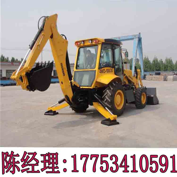 小型挖掘裝載機特點,保整原裝載功能不受影響,挖掘部分折疊做配重,挖掘時裝載部分做底盤支撐,兩部分互不影響,還可以互補。
