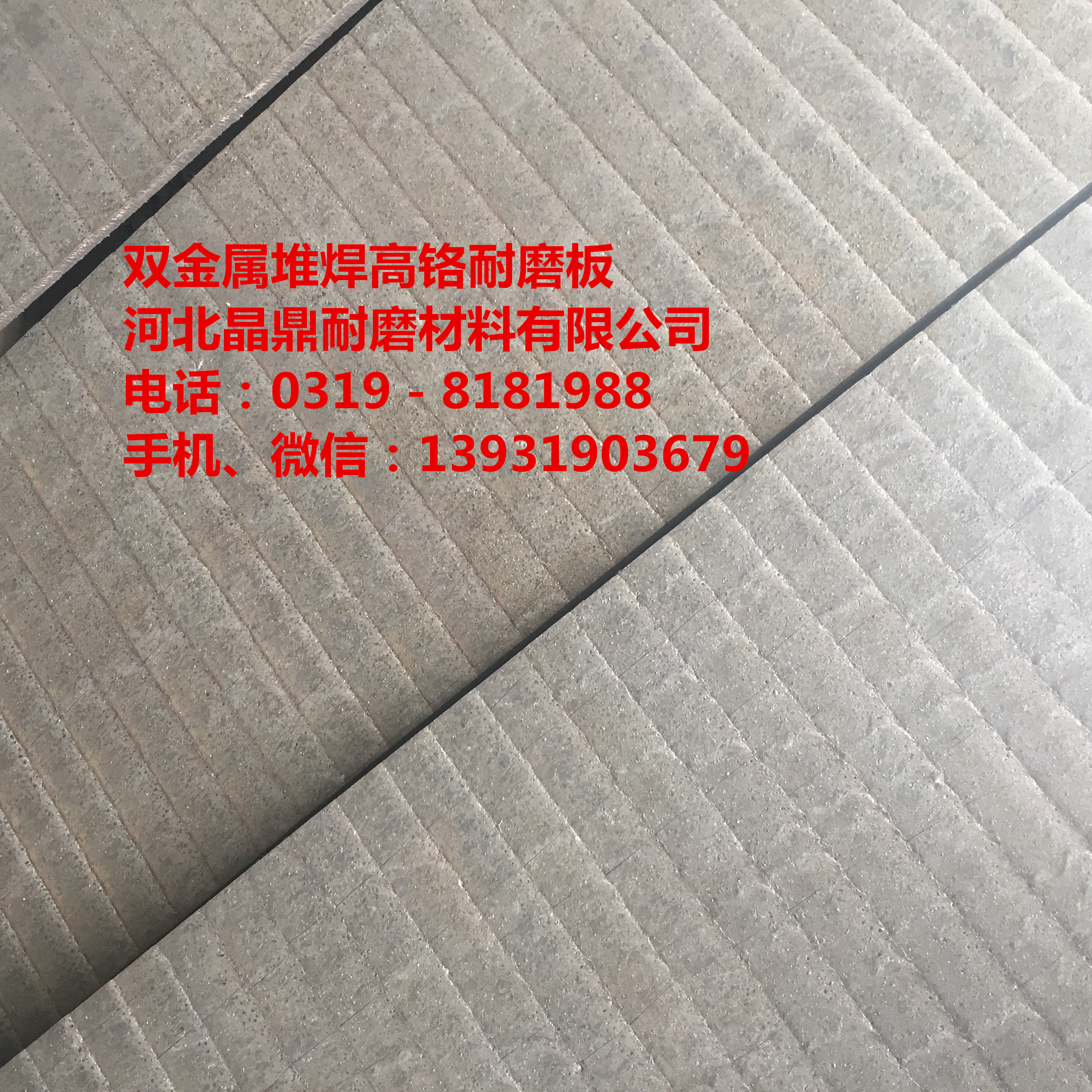 耐磨復(fù)合鋼板JD8+12河北晶鼎堆焊碳化鉻雙金屬耐磨板,