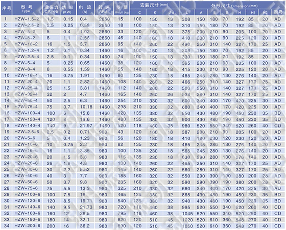 HZW振動電機技術(shù)參數(shù):