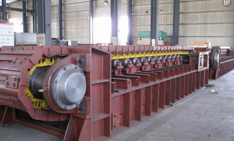 驅(qū)動(dòng)鏈輪的回程鏈輪端邊,設(shè)有張緊調(diào)節(jié)鏈條、鏈板平行運(yùn)轉(zhuǎn)。