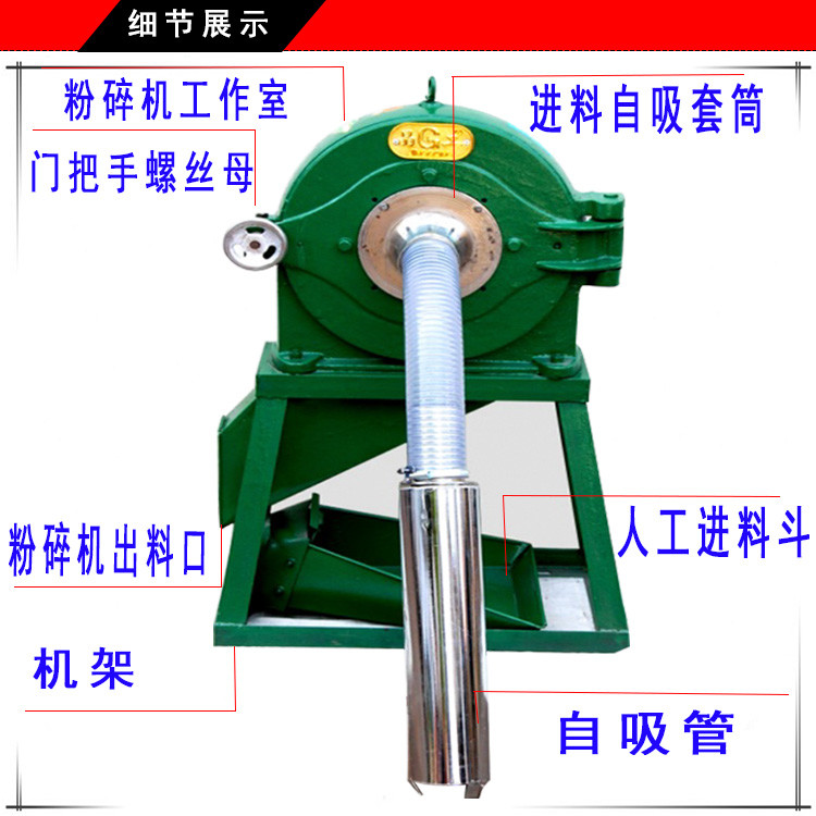 本機(jī)加工范圍廣,它既能粉碎玉米、小麥、豆類(lèi)、雜糧;葉殼等糧食及飼料,又能粉碎石膏、鉛粉、滑粉、稀土、化工、陶土、煤炭等低硬度礦物質(zhì)等,還可以粉碎多種中藥材。本機(jī)可用電機(jī)和柴油機(jī)等配套使用。