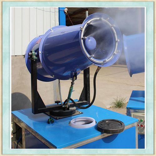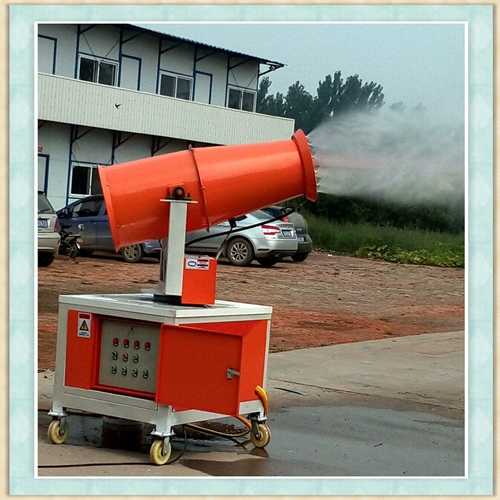 “霧炮”的原理是在液泵噴水后,利用風(fēng)機(jī)將水噴灑出去,能?chē)姙?20米遠(yuǎn)、90米高,向天空噴灑水霧,達(dá)到抑制揚(yáng)塵、綠化除塵等效果。這種霧炮正好治理治理PM2.5超標(biāo)的佳環(huán)保利器。遠(yuǎn)射程風(fēng)送式霧炮機(jī)能有效控制粉塵,降低粉塵濃度,改善工作環(huán)境預(yù)防工礦事故,對(duì)促進(jìn)安全生產(chǎn),保障職工身體健康,維護(hù)環(huán)境衛(wèi)生等具有重要作用。采用國(guó)際先進(jìn)的噴霧重力降塵技術(shù),通過(guò)高壓將水霧化成與粉塵大小相當(dāng)?shù)念w粒,在風(fēng)機(jī)作用下,將水霧拋射到遠(yuǎn)方,在塵源處的上方或周邊進(jìn)行噴霧覆蓋。塵埃顆粒與水珠顆粒產(chǎn)生接觸而變得濕潤(rùn),被濕潤(rùn)的粉塵顆粒繼續(xù)吸附其它粉塵顆粒,逐漸凝結(jié)成顆粒團(tuán),并在自身的重力作用下而沉降,雙而達(dá)到快速將粉塵抑制降沉的目的。