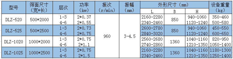 花椒分級(jí)、除雜推薦直線振動(dòng)篩技術(shù)參數(shù):