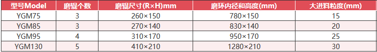 四. YGM系列系列雷蒙磨粉機(jī)技術(shù)參數(shù):