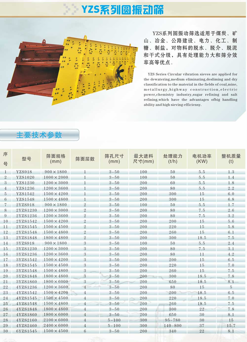 | 您當前位置:首頁 >> 產(chǎn)品庫 >> 振動篩 >> YZS系列圓振動篩 |