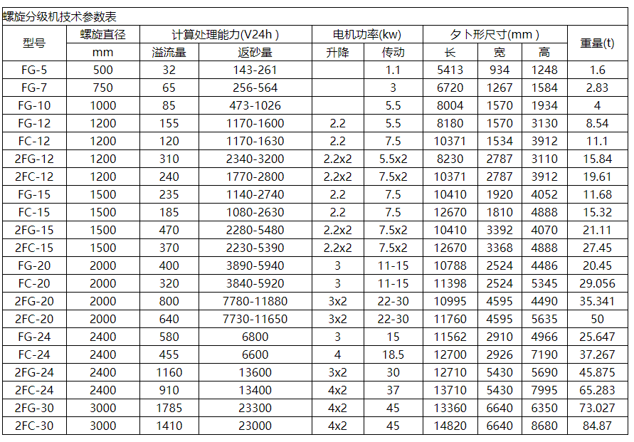螺旋分級主要有高堰式單螺旋和雙螺旋、漂浮式單螺旋和雙螺旋等型式。螺旋分級機具有結(jié)構(gòu)簡單、工作可靠、操作方便等特點。