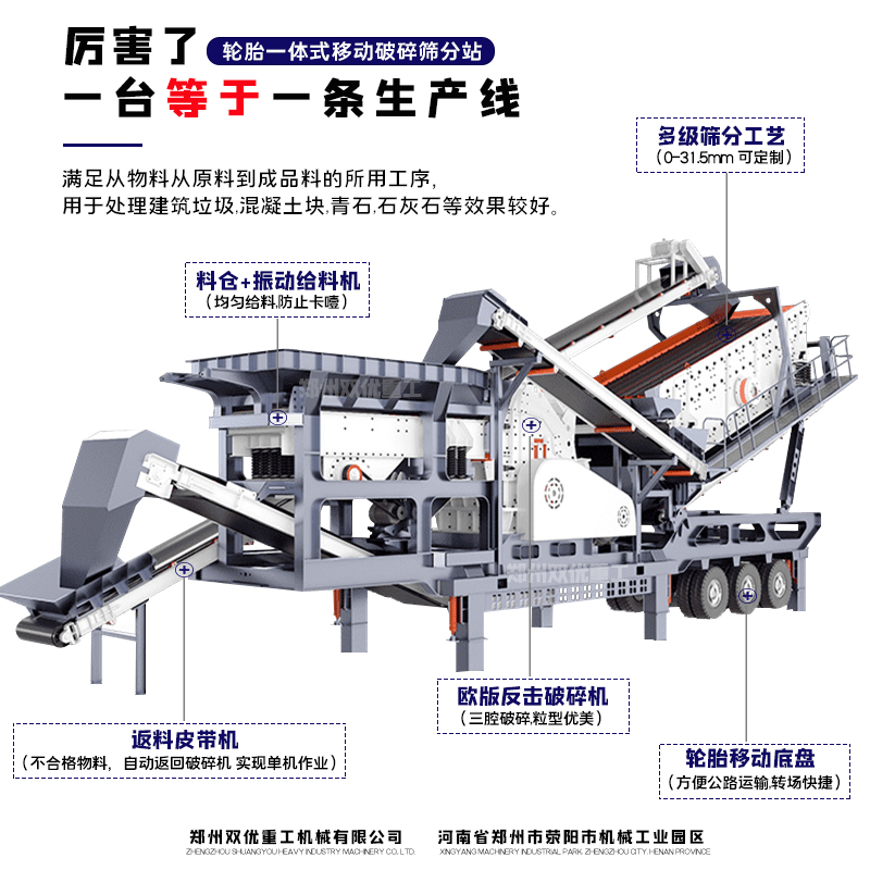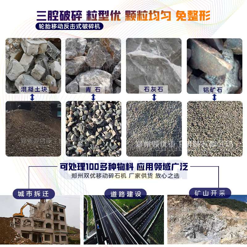 鄭州雙優(yōu)重工廠家專業(yè)生產(chǎn)移動(dòng)破碎機(jī)設(shè)備,可定制50噸,100噸,150噸,200噸,250噸,300噸以上的移動(dòng)生產(chǎn)線,廠家報(bào)價(jià)根這個(gè)產(chǎn)量有直接關(guān)系。在國(guó)內(nèi)的應(yīng)用非常廣泛,南京,淮安,成都,重慶,南陽(yáng),青島,蕪湖,福州等上百個(gè)地域均有案例現(xiàn)場(chǎng),可隨時(shí)參觀考察,了解移動(dòng)破碎機(jī)設(shè)備廠家報(bào)價(jià)多少錢一臺(tái),歡迎咨詢,會(huì)有經(jīng)驗(yàn)豐富的技術(shù)團(tuán)隊(duì)為您量身定制。