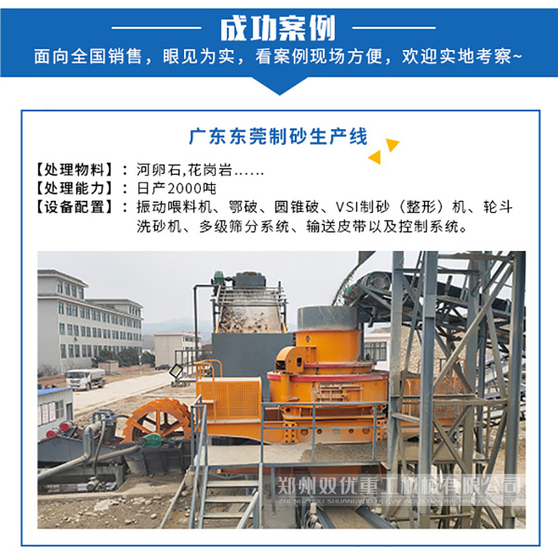 立軸制砂機(jī)使用的就是沖擊破碎原理。在實際的工作中,立軸沖擊破以很高的速度運轉(zhuǎn),轉(zhuǎn)子轉(zhuǎn)速達(dá)到了1700轉(zhuǎn)/分鐘,基本接近細(xì)破碎機(jī)轉(zhuǎn)子轉(zhuǎn)速的一倍了。之所以用這么高的轉(zhuǎn)速,其目的就是為了把物料加速到較高的速度,賦予物料相當(dāng)大的動能,以實現(xiàn)有效的沖擊破碎。雙優(yōu)重工廠家生產(chǎn)的立軸制砂機(jī)有6種型號,有石子整形和機(jī)制砂生產(chǎn)配套設(shè)備的需求,可直接聯(lián)系廠家,工程師根據(jù)您的實際情況推薦合適的配置型號。