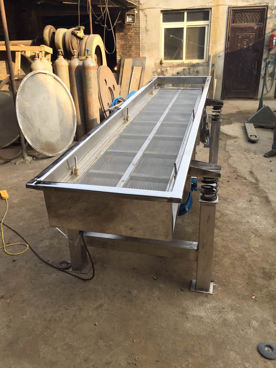 采用電機作為動力源;使物料在篩網(wǎng)上被拋起的同時向前作直線運動,可配合單層或多層篩網(wǎng)以達到脫水、 除雜、檢查等目的;具有分級和輸送的功能。該產(chǎn)品篩分精度高、處理量大、結(jié)構簡單、 耗能少、噪音低、篩網(wǎng)使用壽命長、密封性好、極少粉塵溢散、維修方便、可用于流水線 生產(chǎn)中的自動化作業(yè)。適用于粒度在0.074-5mm、含水量小于70%、無粘性的各種干式粉狀 物料篩分。給料粒度不大于10mm。