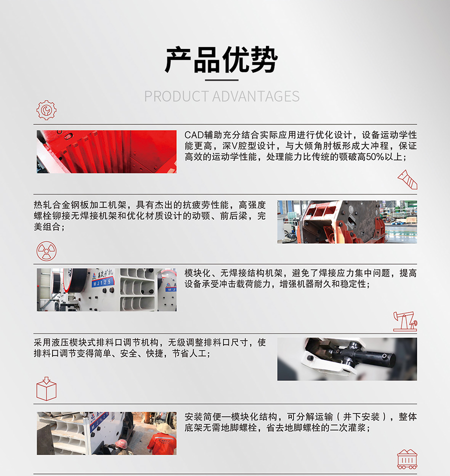 在工藝和技術(shù)上,MJ系列顎式破碎機(jī)通過對(duì)設(shè)備結(jié)構(gòu)、破碎、動(dòng)顎運(yùn)動(dòng)軌跡和轉(zhuǎn)速參數(shù)的不斷優(yōu)化,獲得合理的行程范圍和更大的破碎沖程,使設(shè)備在同功耗下破碎效率更高,客戶投資回報(bào)率更大。