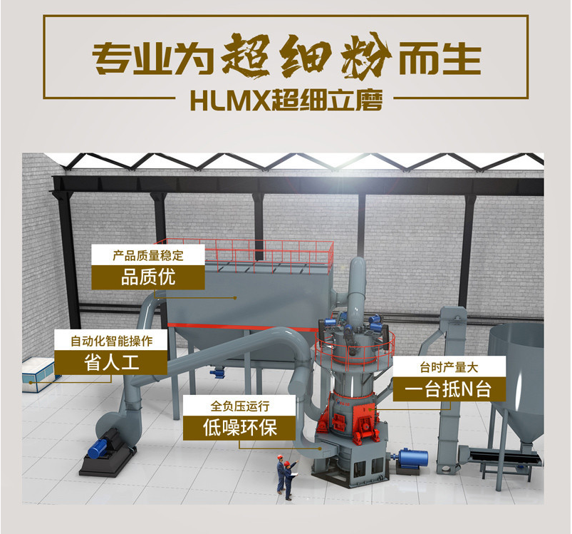 超細(xì)粉應(yīng)用需求越來(lái)越多,傳統(tǒng)的超細(xì)粉加工設(shè)備產(chǎn)能低,已經(jīng)無(wú)法滿足超細(xì)粉領(lǐng)域規(guī)模化生產(chǎn)的要求。鴻程HLMX系列超細(xì)立式磨粉機(jī)是桂林鴻程借鑒德國(guó)、日本、臺(tái)灣技術(shù),在HLM立式磨粉機(jī)的基礎(chǔ)上,開(kāi)發(fā)的適合我國(guó)非金屬礦產(chǎn)業(yè)發(fā)展要求的大型高細(xì)立式磨粉設(shè)備,突破了超細(xì)粉加工產(chǎn)能瓶頸,可替代進(jìn)口設(shè)備,成為超細(xì)粉規(guī)?;a(chǎn)的理想設(shè)備。