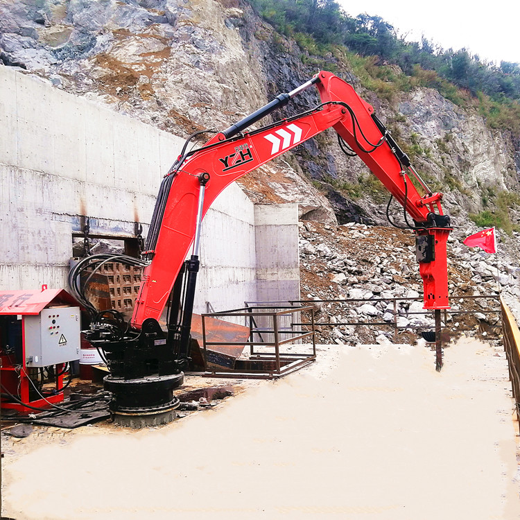 固定式液壓碎石機(jī)械臂為山東元征行機(jī)械設(shè)備有限公司生產(chǎn)的礦山破碎大石塊用機(jī)械,ISO9001質(zhì)量認(rèn)證,質(zhì)量有保證。機(jī)器可遠(yuǎn)程操作,可以使用遠(yuǎn)程操作臺,遙控器進(jìn)行遠(yuǎn)程操控,這也可以有效的保證操作人員的安全。機(jī)械操作簡單易學(xué),降低了操作難度,同時也避免了因操作錯誤而造成的不可逆的影響。
