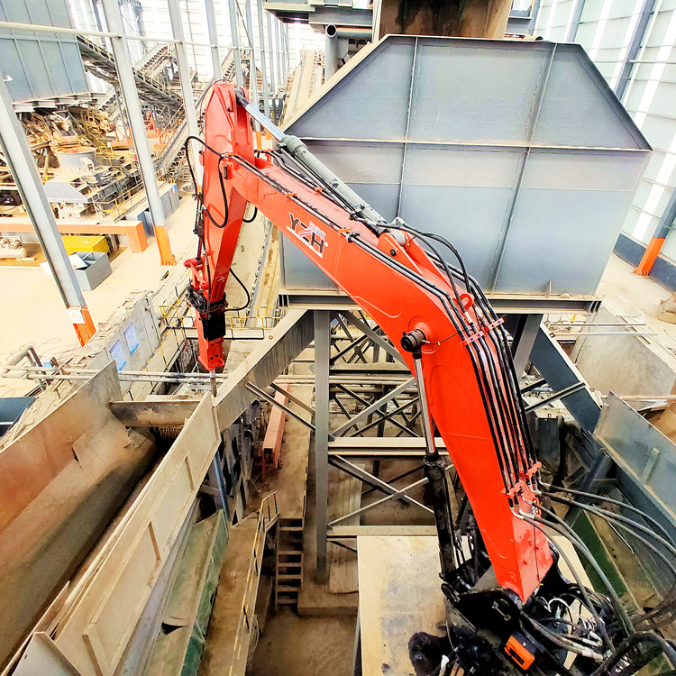 礦山采石場用液壓抓鋼機設備是集機、電、液于一體的大功率破碎、拆除作業(yè)礦山設備。液壓抓鋼機設備主要由4個大部分組成:液壓破碎錘(破碎巖石)、大小臂作業(yè)系統(tǒng)(斗桿)、液壓油站(動力來源)以及控制器(操作系統(tǒng))。本產(chǎn)品為液壓抓鋼機設備,主要用于:礦山、采石場,砂石骨料場、冶金鑄造廠、水泥廠、化工廠等露天地上施工環(huán)境或地下礦井溜井機口和格篩處,對大塊礦石進行二次免破碎,以便運輸。