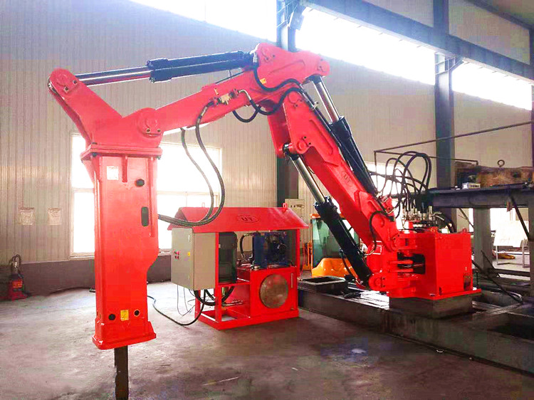 元征行生產(chǎn)金礦格篩破碎機被叫做料口碎石機械手,是集機、電、液于一體的大功率破碎、拆除作業(yè)礦山設備??晒潭ㄔ诹蟼}一側,既能破碎料倉、給料機及機口處大的石料,又能替代危險性高的人工手動清理,可以使生產(chǎn)順暢,是輔助破碎機料口礦石破碎給料的理想設備。