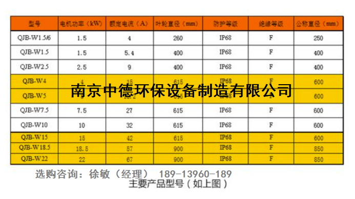 污泥回流泵/潛水回流泵常規(guī)型號參數(shù):