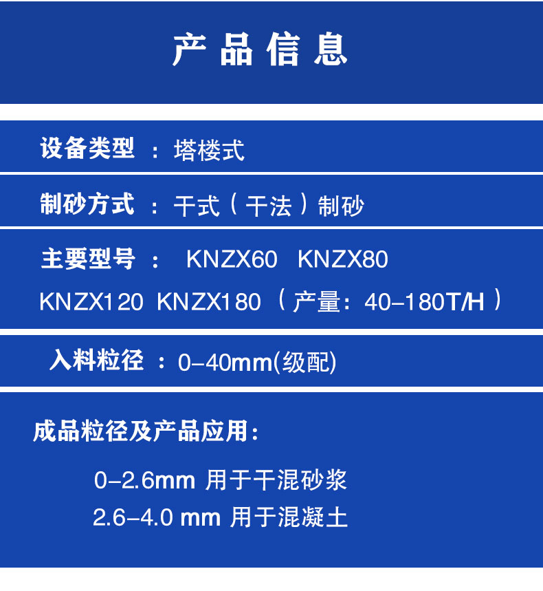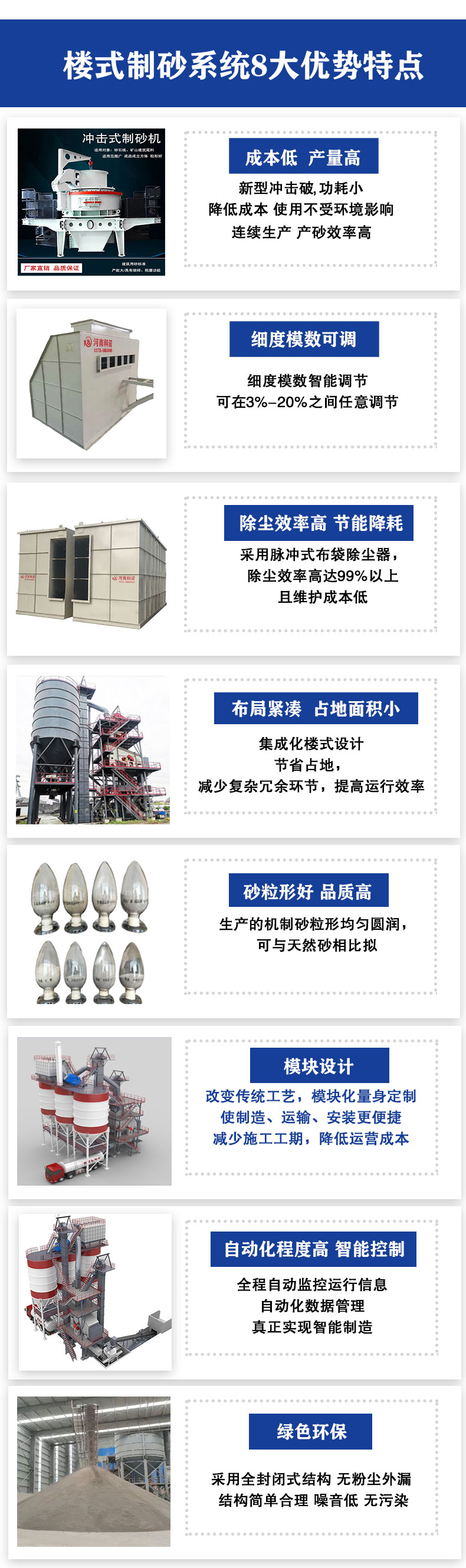 【適用范圍】可用于攪拌站、干混砂漿、水泥制品廠等配套制砂,骨料礦山配套制砂,大型建工項目配套制砂等,可滿足市場對砂的需求,具有優(yōu)厚的投資價值,贏得了多方的贊譽和市場的認可。