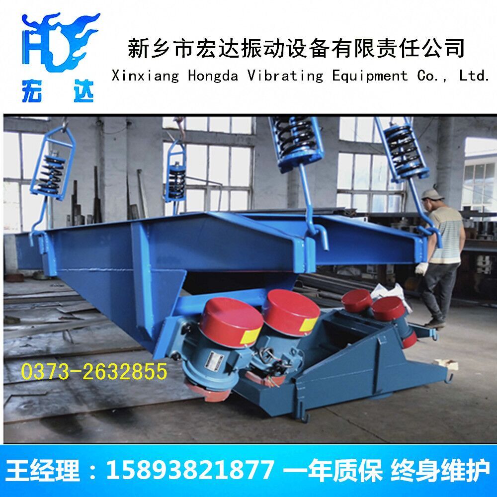 1.生產(chǎn)率的確定:本系列自同步慣性振動給料機(jī)的生產(chǎn)率是以河砂為標(biāo)準(zhǔn)物料給出的(堆比重為1.6T/m3)。當(dāng)物料堆比重大于1.6T/m3時,其產(chǎn)量可按額定值選??;當(dāng)物料的堆比重在1.2~1.6T/m3時,其產(chǎn)量可達(dá)到額定產(chǎn)量的0.9~1.0倍。當(dāng)物料堆比重在0.8~1.2T/m3時,其產(chǎn)量可過到額定值的0.8~0.9倍。物料堆比重小于1.6T/m3時,須適當(dāng)增加料層厚度,以提高產(chǎn)量。