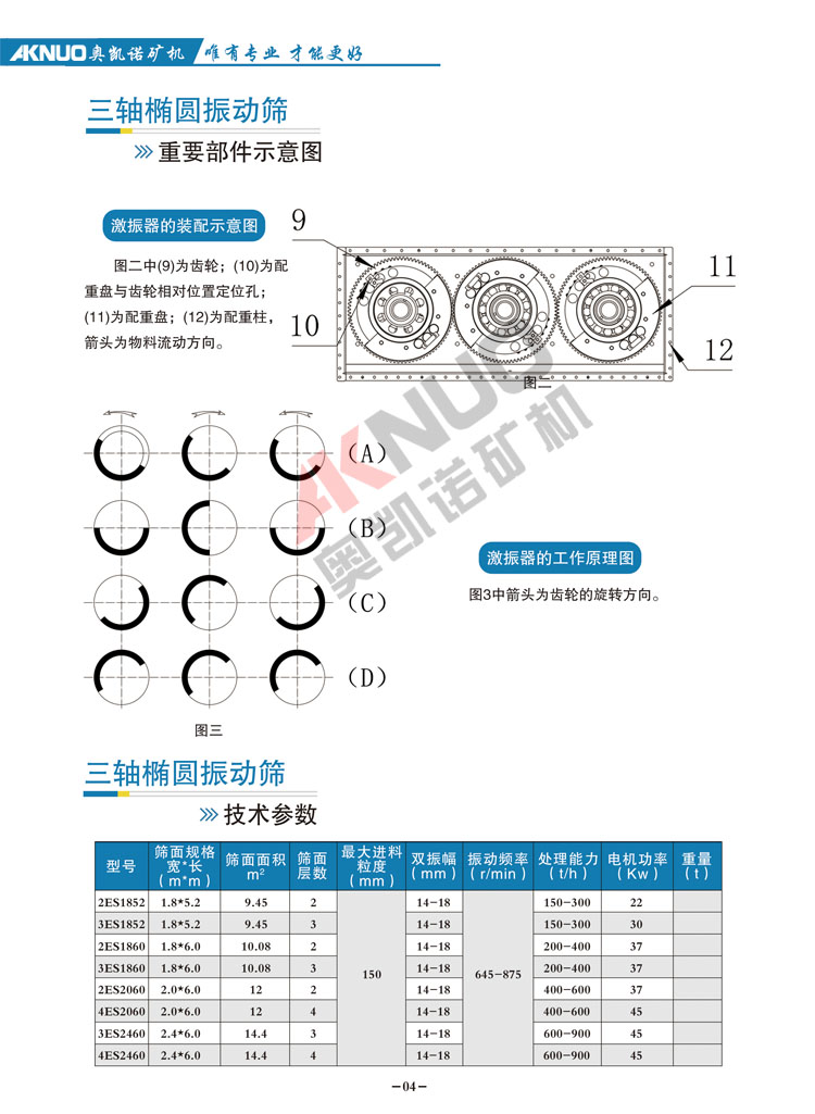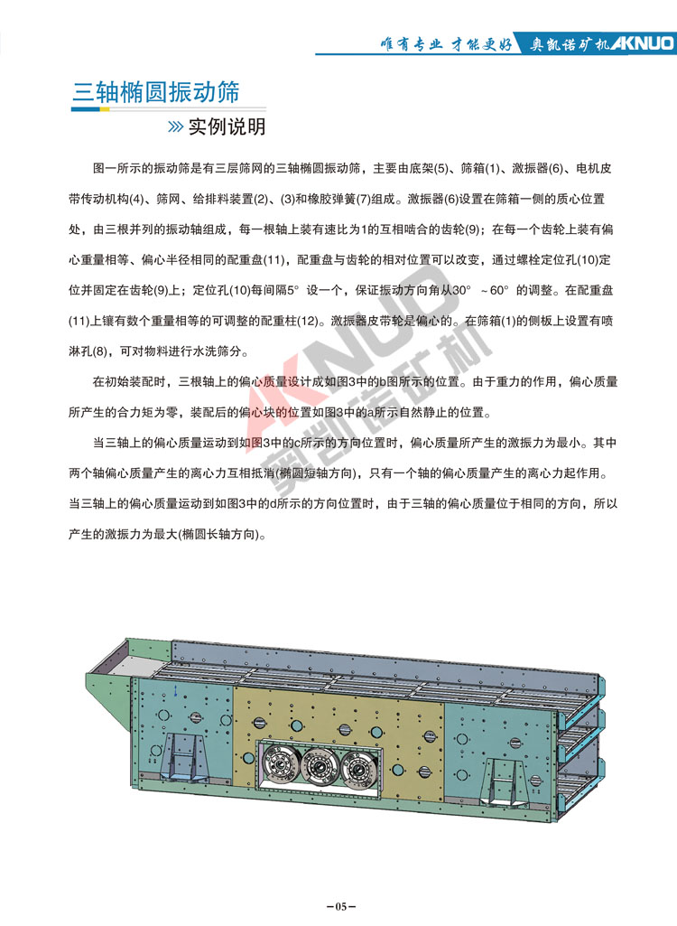 ?。?、三軸驅(qū)動能使篩機產(chǎn)生理想的橢圓運動,它兼有圓振動篩和線振動篩的優(yōu)點,且橢圓軌跡振幅可調(diào),可根據(jù)實際物狀況選擇振動軌跡,對難篩分的物料更具優(yōu)勢。