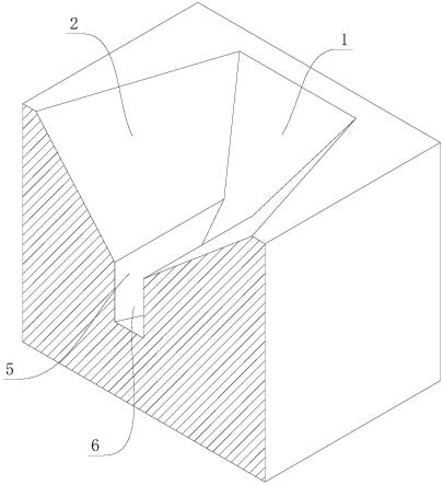 鄂破重型板式喂料機(jī)入料倉(cāng),包括擋車(chē)墻,擋車(chē)墻的兩側(cè)設(shè)有側(cè)翼板,側(cè)翼板的底部設(shè)有導(dǎo)料槽,導(dǎo)料槽的兩側(cè)沿垂直方向設(shè)有側(cè)立板,側(cè)立板的頂端與側(cè)翼板的底端連接,擋車(chē)墻延伸到導(dǎo)料槽內(nèi),擋車(chē)墻的底部設(shè)有收納槽,收納槽位于導(dǎo)料槽的延伸方向上。