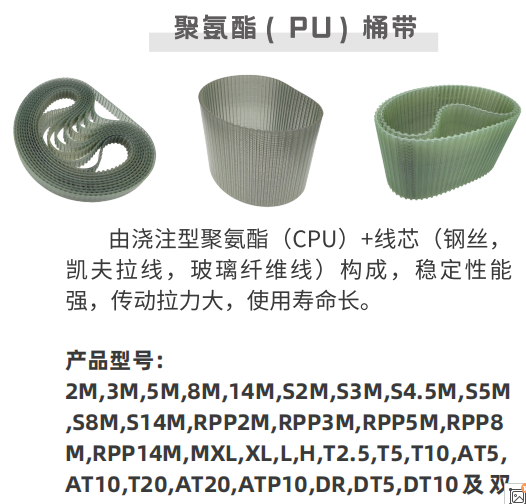 經營三角帶、同步帶、齒形帶、多楔帶、廣角帶、六角帶、農機帶、變速帶、平皮帶、輸送帶、片基帶、皮帶輪、皮帶扣以及特種加工皮帶等產品,