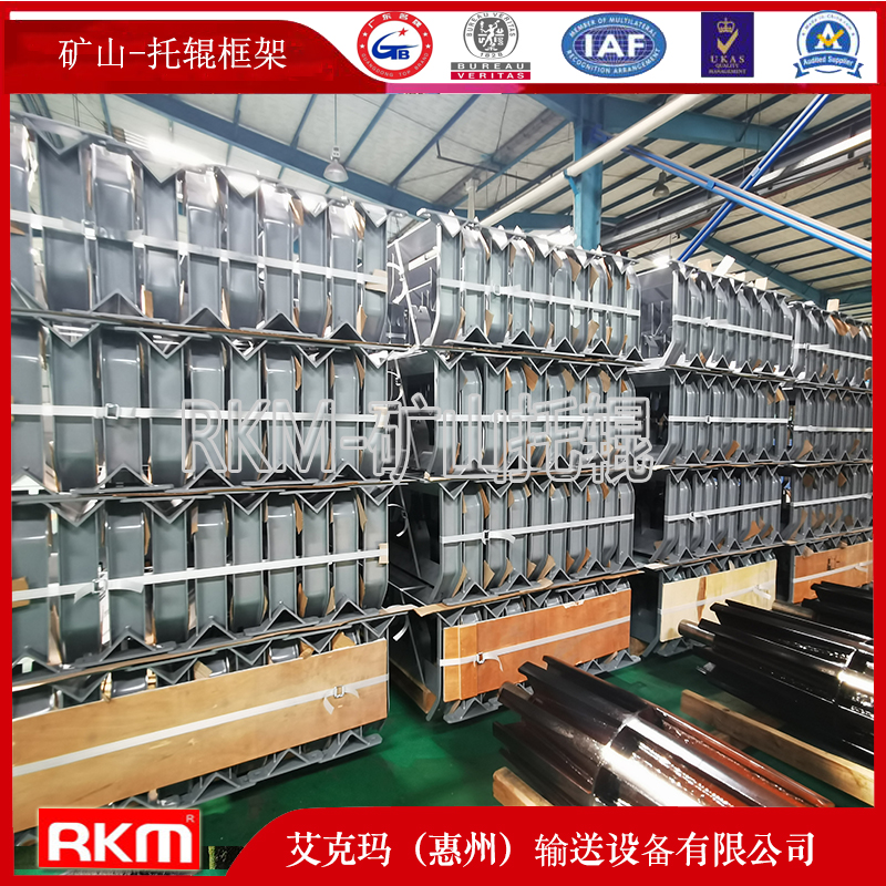 帶式輸送機托輥組框架用于支撐托輥、皮帶和散裝物料,以保持皮帶運行。根據(jù)托輥組的功能,框架可分為槽形框架、平框架、調心框架、返回框架等