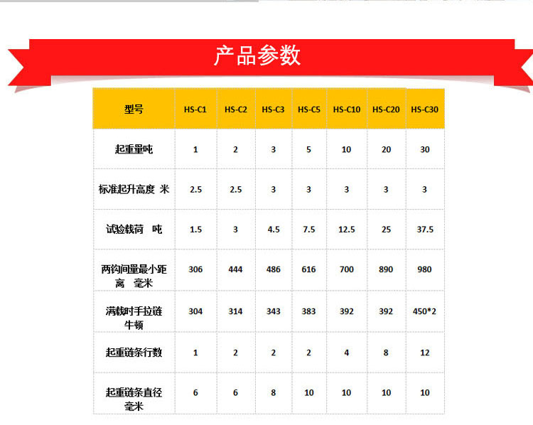 國標(biāo)獵鷹hs-c304不銹鋼手拉葫蘆參數(shù)