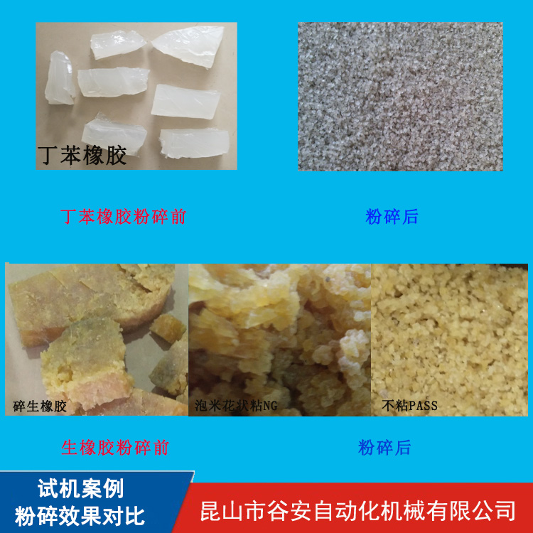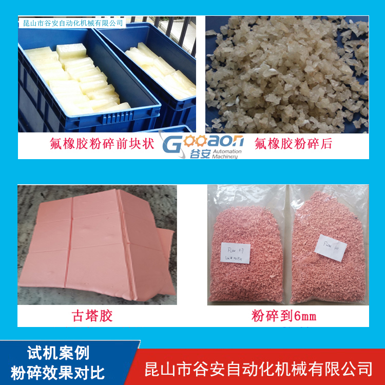 可以搭配切膠機使用,將35KG的整塊橡膠切小粉碎,也可以使用更大的機器直接粉碎35KG的橡膠