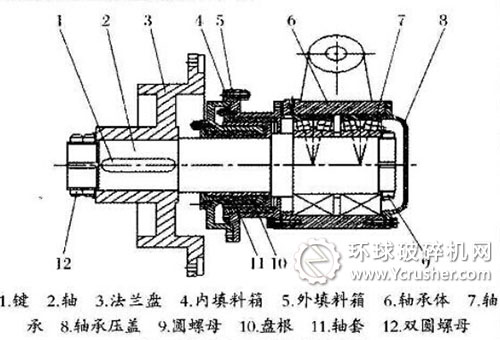 a、聯(lián)接組零件異常,雙圓螺母12松動(dòng)、法蘭盤(pán)3肉孔磨損、鍵槽磨損、鍵1磨損。