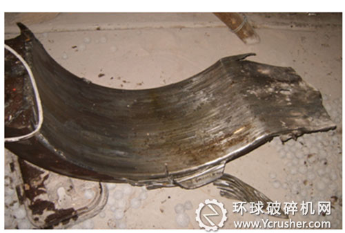 輕度燒瓦。指燒瓦時(shí)間較短,瓦面受傷程度較小,只是局部磨損或出現(xiàn)高點(diǎn),磨損并被帶出的只是呈片狀巴氏合金,且進(jìn)油處瓦口間隙沒(méi)有被堵塞等情況。如按傳統(tǒng)處理方法,必須頂磨取瓦研刮,既費(fèi)時(shí)也費(fèi)力。對(duì)此,我們總結(jié)出不頂磨取瓦的快速處理方法,即:輔傳慢轉(zhuǎn)磨機(jī),加大磨機(jī)的通風(fēng)量及燒瓦處的淋油量,一方面使軸瓦及中空軸快速冷卻下來(lái);另一方面則在慢轉(zhuǎn)過(guò)程中,把中空軸表面粘附或燒結(jié)的巴氏合金刮去,并用油石打磨中空軸,等中空軸溫度正常后,停磨吊出軸承蓋,清理瓦口進(jìn)出油處的巴氏合金屑(主要是清理瓦口間隙),清洗稀油站回油處濾網(wǎng)及進(jìn)油過(guò)濾網(wǎng),油臟時(shí)要更換潤(rùn)滑油。然后按正常生產(chǎn)減小投料量啟動(dòng)磨機(jī),加大燒瓦處的淋油量使磨機(jī)在運(yùn)轉(zhuǎn)中把瓦面產(chǎn)生的高點(diǎn)磨去。運(yùn)轉(zhuǎn)中要注意控制中空軸表面的溫度不超過(guò)75℃,溫度高時(shí)把磨機(jī)停下來(lái),慢轉(zhuǎn)磨冷卻,等中空軸表面的溫度降到30℃再重新啟動(dòng)磨機(jī)。經(jīng)過(guò)幾次磨合,就可使高點(diǎn)磨去,中空軸溫度達(dá)到正常范圍之內(nèi)。此方法在Φ1.7m×2.5m煤磨、Φ2.4m×12m和Φ2.6m×10m水泥磨等輕度燒瓦時(shí)應(yīng)用過(guò),只要1~3個(gè)程序就可處理好,效果較好。