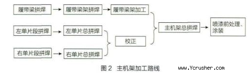 總之,采用上述拼焊工裝和上述加工工藝生產(chǎn)出的主機(jī)架總成,較好保證了整機(jī)裝配所需的各項(xiàng)尺寸精度和形位公差要求,保證了設(shè)備的鑄造質(zhì)量。目前,移動(dòng)式破碎機(jī)處理