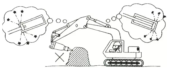 反過(guò)來(lái)說(shuō),當(dāng)操作的程度過(guò)大,會(huì)導(dǎo)致工程機(jī)械前部已舉起時(shí),可能會(huì)因石塊破碎導(dǎo)致工程機(jī)械瞬間前傾。使得破碎錘的本體或護(hù)板猛力撞擊石塊而產(chǎn)生損傷。